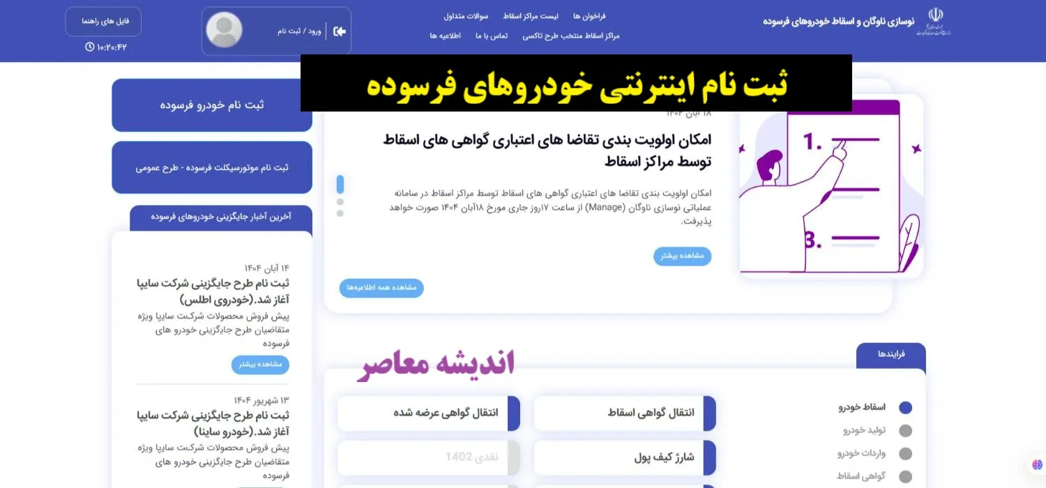 برای ورود مستقیم به سامانه ثبت نام خودرو فرسوده کلیک کنید.